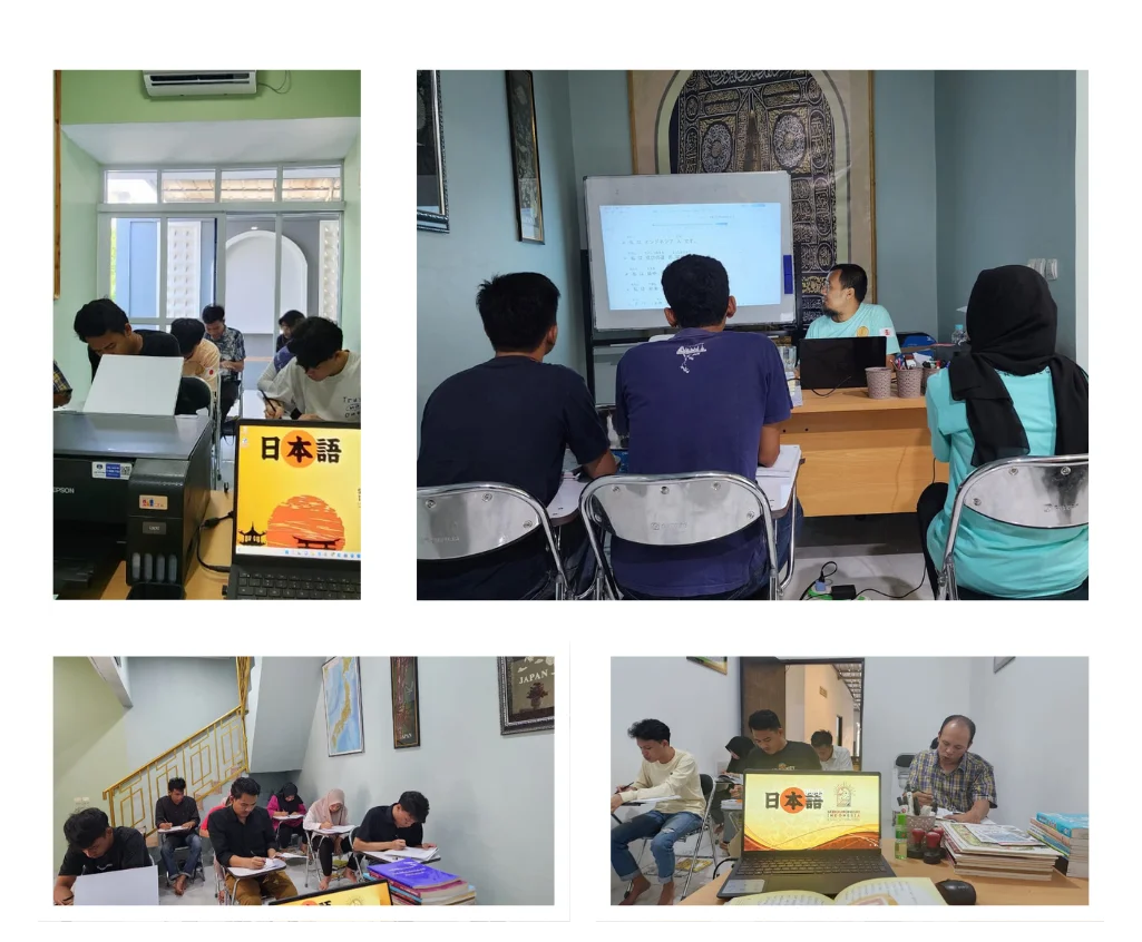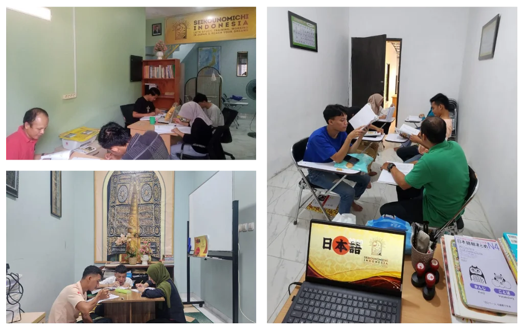 Di lembaga pelatihan kami, peserta diwajibkan belajar di luar jam pelajaran. Peserta dapat mengembangkan gaya belajar mereka sendiri dan memperdalam pemahaman mereka dengan berfokus pada peninjauan kanji, penggunaan kartu bergambar, dan buku referensi.